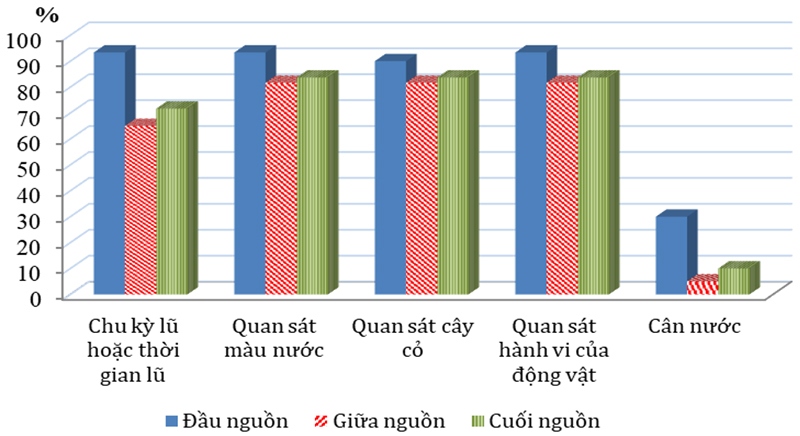Hình 1. Tỷ lệ phần trăm hộ dân sử dụng các dấu hiệu trong dự báo lũ